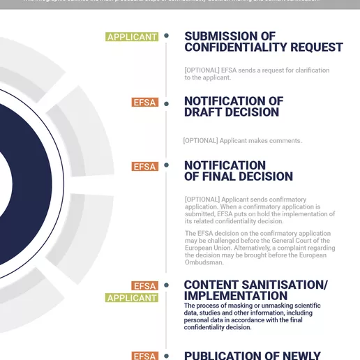 Regulation (EU) 2019/1381 (“Transparency Regulation”), which has been in application since 27 March 2021, strengthens the principle of transparency of the risk assessment process in the food chain. Among several regulatory innovations, it stipulates the proactive public disclosure of all information supporting any request for a scientific output to be delivered by EFSA, with the exception of duly justified confidential data.