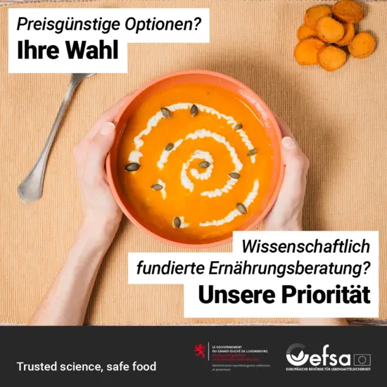 In der Europäischen Union stellen die nationalen Behörden den Verbraucherinnen und Verbrauchern lebensmittelbezogene Ernährungsleitlinien für eine gesunde Ernährung zur Verfügung. Dabei handelt es sich um wissenschaftlich fundierte Empfehlungen für die Allgemeinbevölkerung und für Gruppen wie Schwangere und Kinder. Sie bieten praktische Informationen wie Portionsgrößen für verschiedene Lebensmittel und empfohlene tägliche oder wöchentliche Aufnahmemengen.